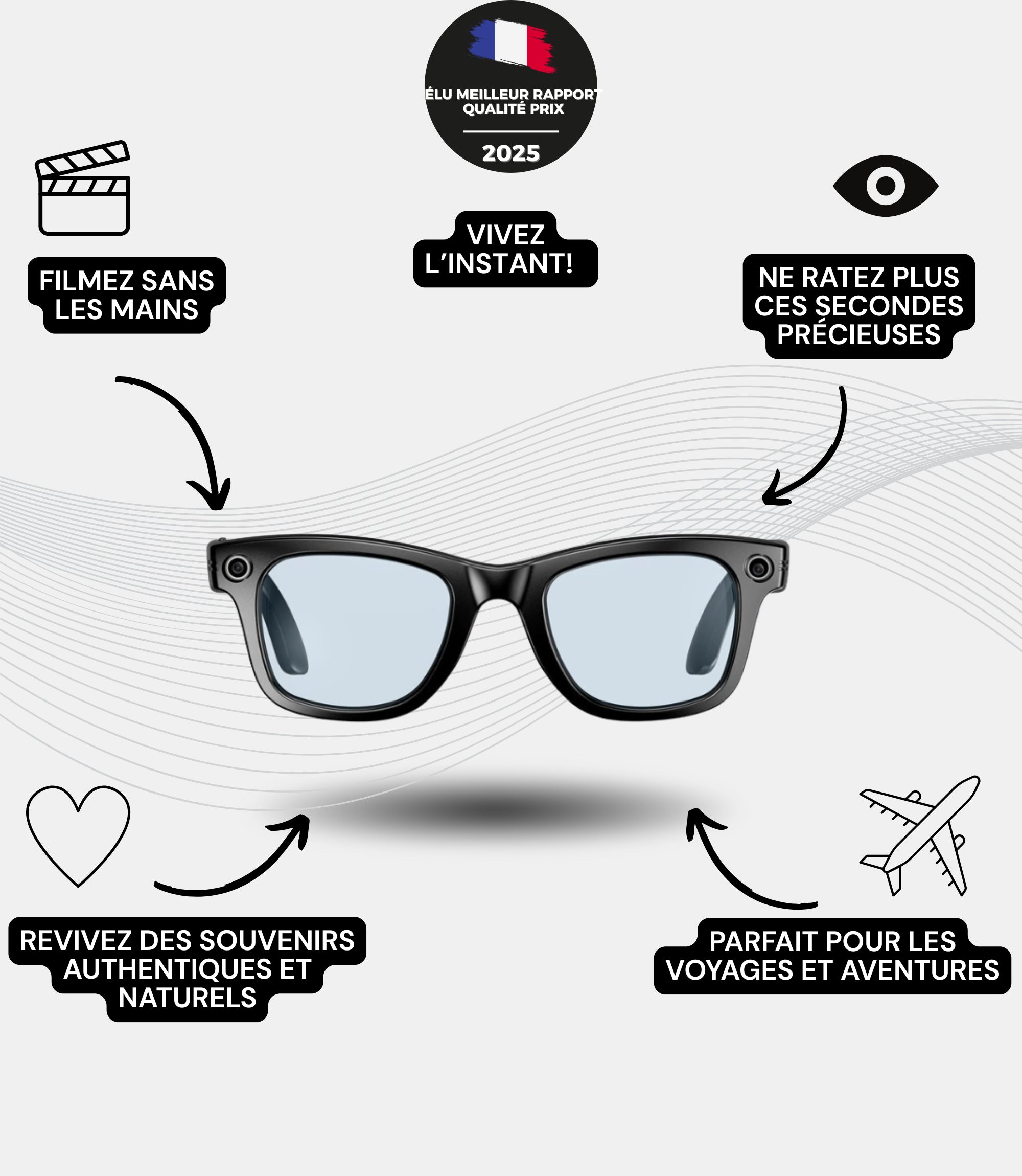 Compatibles avec tous les smartphones (iOS & Android), les lunettes se connectent en Bluetooth et peuvent être localisées depuis votre application de localisation habituelle.